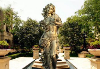西方公園迷人的銅雕男女人物