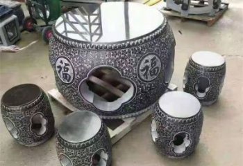 民間石槽石桌組合擺件