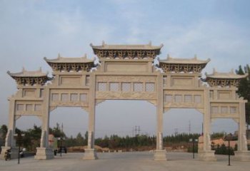 仿古石雕牌樓,是一種將村莊街道的文化氣息完美融入其中的建筑藝術。它以傳統工藝精心打造,每座牌樓都有三門五樓,外墻裝飾有浮雕,用青色石雕裝飾,使建筑有更多的視覺沖擊力。