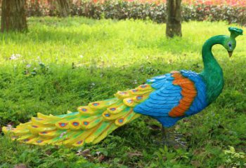 玻璃鋼彩繪孔雀雕塑——宛如草地上行的視覺盛宴