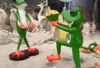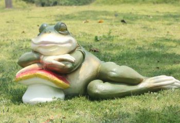 仿真青蛙雕塑玻璃鋼玻璃上一草坪裝飾
