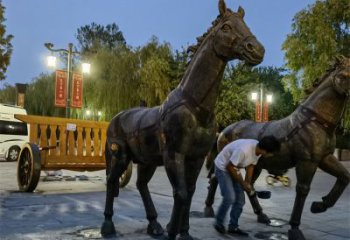 馬在人類文化中一直是力量、速度與自由的象征。雕塑中馬昂首嘶鳴、前蹄騰躍的姿態,傳遞出一種勇往直前、積極向上的精神,寓意著奮進與活力,能激勵人們不斷拼搏進取。同時,馬還常與成功、繁榮相關聯,代表著馬到成功的美好祝愿。鑄銅雕塑有著復雜且精湛的流程。首先要制作雕塑的原型,一般用泥或石膏等材料塑造出想要的造型。接著制作模具,多采用硅膠或玻璃鋼材質。之后進行蠟模制作,將蠟液注入模具,冷卻后形成蠟模。然后是澆鑄環節,把銅加熱熔化成銅水,澆入蠟模形成鑄銅馬的毛坯。最后經過打磨、拋光、做舊等一系列后期處理,讓雕塑表面更加光滑,色彩與質感更符合設計需求,最終呈現出這尊栩栩如生的鑄銅馬雕塑。
