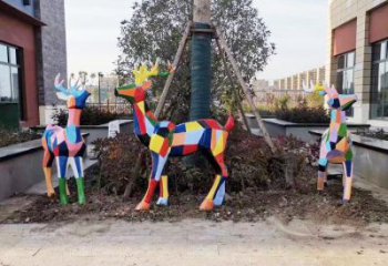 不銹鋼幾何雕塑——梅花鹿,點(diǎn)綴戶外公園