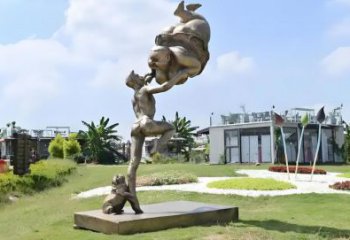 作為景觀雕塑,它旨在為戶外公共空間注入生活氣息與藝術活力,成為人們休閑場景中的視覺亮點,喚起對童年的美好回憶。采用銅雕塑材質,銅的質感厚重且富有歷史感,能很好地塑造出人物的形態與細節,歷經歲月也能較好保存,適合長期放置在戶外環境中。從趣味雕塑的角度,設計聚焦孩童掰手腕這一充滿童真與競技感的游戲場景。兩個孩子在樹樁上全神貫注比拼力氣,面部神情專注又帶點較勁的可愛;一旁背著竹簍的孩子俯身關注,仿佛也沉浸在這場 “較量” 中,姿態生動自然。周圍搭配的陶罐等物件,更增添了生活場景的真實感,讓整個雕塑充滿故事性與趣味性,仿佛將一段無憂無慮的童年時光定格在公共空間里,能瞬間勾起觀者的童年記憶,帶來輕松愉悅的感受,使藝術與大眾的生活體驗緊密相連,成為大家樂于觀賞、互動甚至打卡留念的對象。<br />