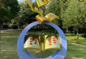 這是一件落地于現代建筑前場的鏡面不銹鋼景觀雕塑:以流線型閉環為形態,通體覆鎏金點狀紋理,鏡面材質映鑒建筑與環境,既成空間視覺焦點,又借 “環” 的意象串聯場地氣質,是藝術與城市景觀的創意融合體。