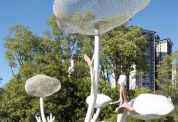 這是一件兼具藝術(shù)感與敘事性的景觀雕塑,以一大一小兩個(gè)抽象人物為核心,采用拋光金屬打造而成,屬于典型的金屬雕塑與人物雕塑。整體造型簡(jiǎn)約流暢,光滑的黑色金屬表面在光影下泛著冷冽光澤,與銀灰色云朵底座形成質(zhì)感對(duì)比。成人雕塑手持紙鶴,孩童雕塑嘴邊懸浮著氣泡,構(gòu)成充滿詩意的互動(dòng)場(chǎng)景。作為一件創(chuàng)意雕塑,它打破了傳統(tǒng)人物雕塑的寫實(shí)束縛,用極簡(jiǎn)的幾何線條勾勒人物形態(tài),通過紙鶴與氣泡的意象,傳遞出童真、陪伴與遐想的主題。設(shè)計(jì)師將雕塑與戶外空間深度融合,云朵底座既強(qiáng)化了懸浮感,又成為連接地面與建筑的視覺過渡,讓這件作品成為激活場(chǎng)地氛圍的點(diǎn)睛之筆。