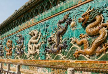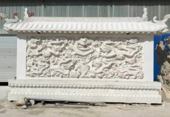 以九龍壁為靈感,漢白玉浮雕裝飾的九龍墻飾