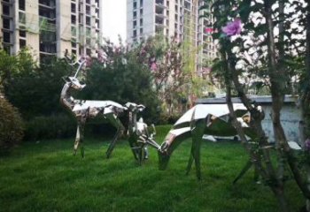 梅花鹿幾何不銹鋼雕塑