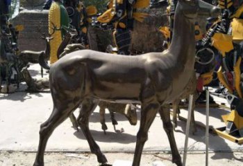 精美鹿雕塑,在公園里覓食的活力象征